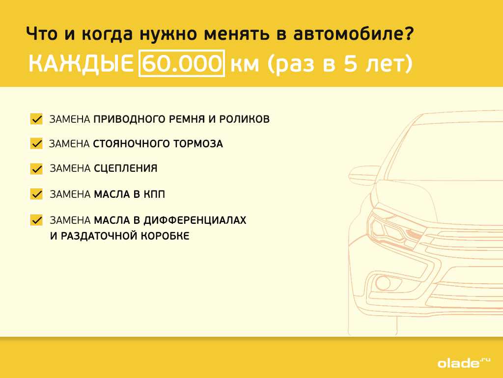 5 лет – серьёзный срок для любой техники, и автомобиль не является исключением. Точно также пробег в 60 000 км – достаточно большой и, как правило, после шестидесяти в автомобилях проявляются первые болячки. Чтобы их избежать, выполняйте следующие действия: