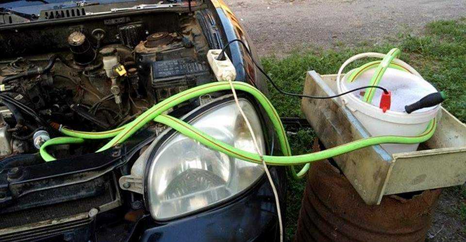 Чем ниже мощность погружного насоса, тем лучше. При сильном давлении поток воды может повредить соты радиатора. Останется лишь залить в систему новый антифриз и проверить состояние печки. Если дело в засоре, она будет дуть теплым даже на холостых.