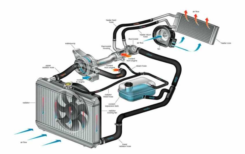 На работу обогревателя салона в значительной мере влияет система охлаждения силовой установки, поскольку она обеспечивает печку носителем тепла.