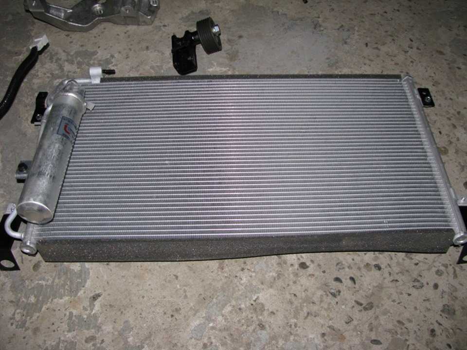 - Подсоединить к конденсатору все трубки с компрессора, закрепить их хомутами, после чего затянуть крепёж конденсатора.