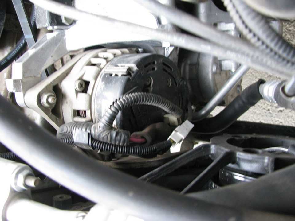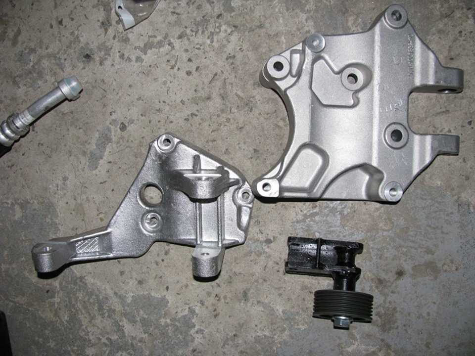 С автомобиля снимается генератор вместе с креплением, находящимся под ним (оно будет мешать установке ремня компрессора).