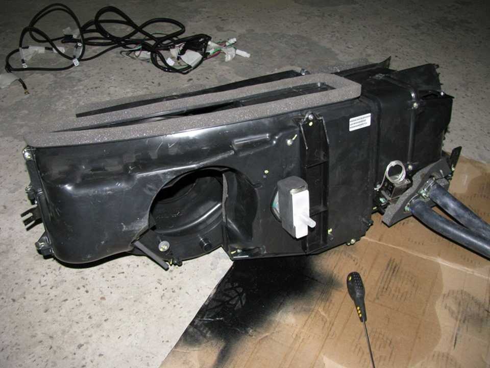 Слив антифриз, отсоединяем патрубки печки и вынимаем отопитель целиком в сборе