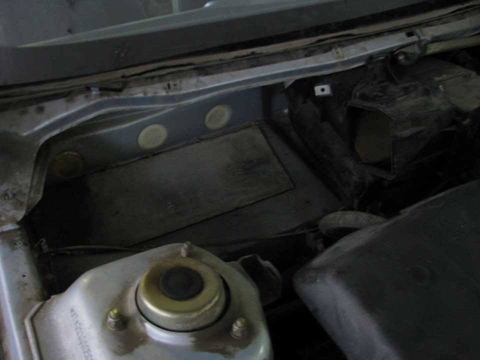 - Основные элементы кондиционера установлены, осталось проложить проводку. Для этого с автомобиля снимается адсорбер и крышка монтажного блока, расположенная рядом.
