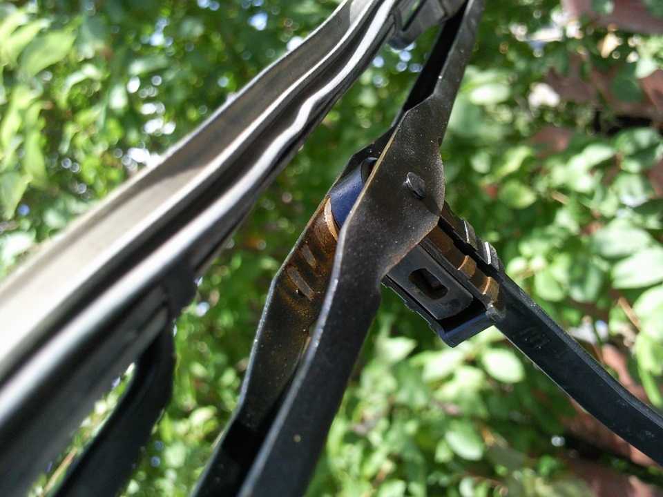 - аккуратно, сжимая пластиковое крепление с двух сторон, покачиваниями тянем дворник в сторону от крючка.