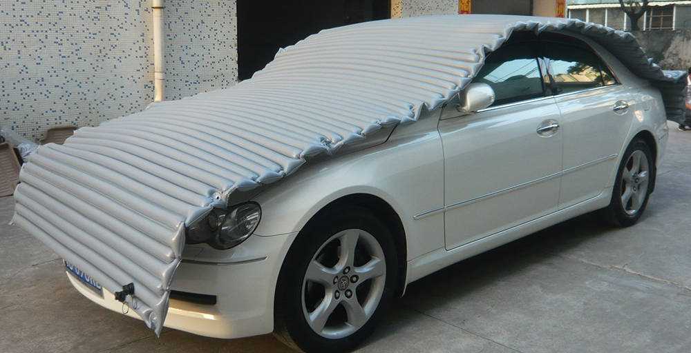 К сожалению, большинство жителей мегаполисов не в состоянии обеспечить для своего «железного коня» постоянное стационарное жильё. Вариант с крытыми стоянками также считается достаточно дорогостоящим, поэтому основная масса машин вынуждена стоять под открытым небом – на платных/бесплатных городских стоянках или непосредственно во дворе. В таких случаях от непогоды обычно используют непромокаемый чехол, который отлично защищает от снега или дождя, но может оказаться бесполезным при граде. Так что самый оптимальный вариант – использование специальных тентов, о которых мы уже упоминали. При этом нужно учитывать и такие моменты, как наличие вблизи стоянки деревьев или хрупких металлических, пластиковых и деревянных конструкций. Автомобиль следует ставить вне зоны досягаемости этих объектов при их падении. Если вы ставите машину на даче, избегайте заборов, причём деревянные менее опасны, чем выполненные из металлопрофиля – сильному порыву ветра не составит труда оторвать хлипкий лист, представляющий опасность не только для автомобиля, но и людей, случайно оказавшихся в этот момент рядом. Если тратить деньги на покупку антиградового покрытия желания нет (минимальная стоимость – от 1500 рублей), можно пошить защитный чехол самостоятельно. По крайней мере, так удастся сэкономить около половины средств.
