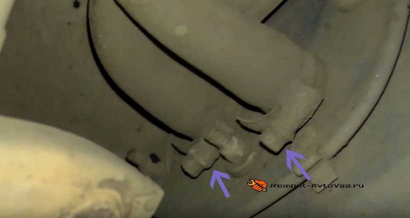 Теперь когда патрубки сняты, следует залезть под машину и колючем на «10» открутить крепежные гайки крана печки. Так как гайки мы подготовили и они за это время уже откисли я думаю с этим не должно быть проблем.