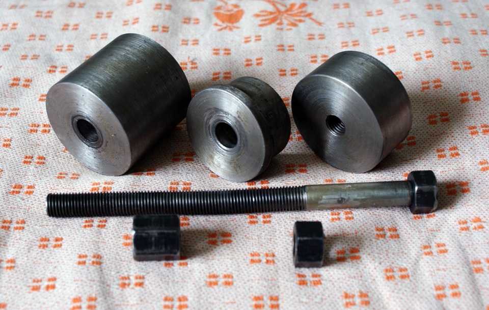 Итак, инструменты, которые понадобятся для производства съемника – это: набор автомобилиста с множеством ключей и отвертками, небольшой отрез крепкой металлической трубы с таким диаметром, который немного больше взятого сайлентблока, несколько больших шайб из стали, длинный болт с качественной резьбой, специальная одежда и строительные перчатки.